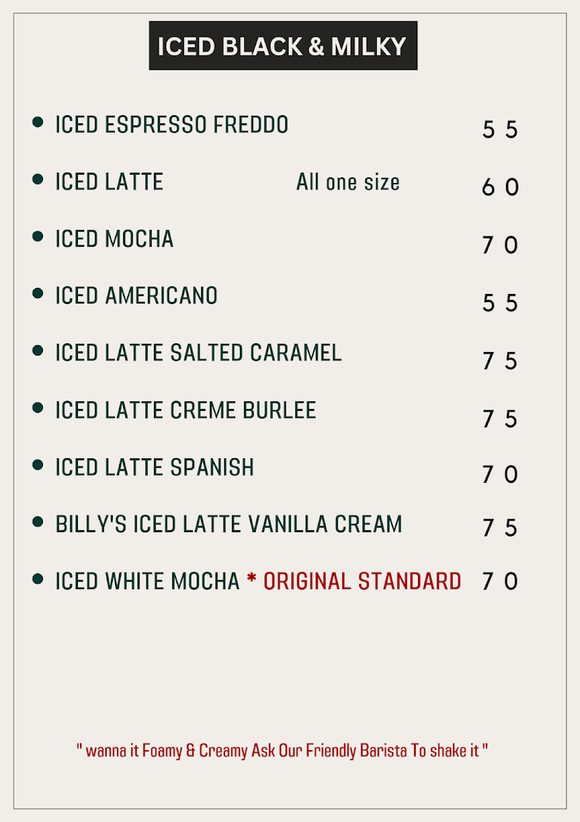 Billy's Coffee prides itself on serving exceptional coffee sourced from around the globe. One of the stars of the menu is the Iced Freddo Espresso—a creamy delight that transforms classic coffee into an invigorating ice-cold treat, perfect for those warm Port Said days at just EGP 85. For something a bit different, you can't go wrong with the Hot/Iced Spanish White Mocha Latte, a special blend recommended for those who enjoy a touch of sweetness, rated 10/10 by our patrons.